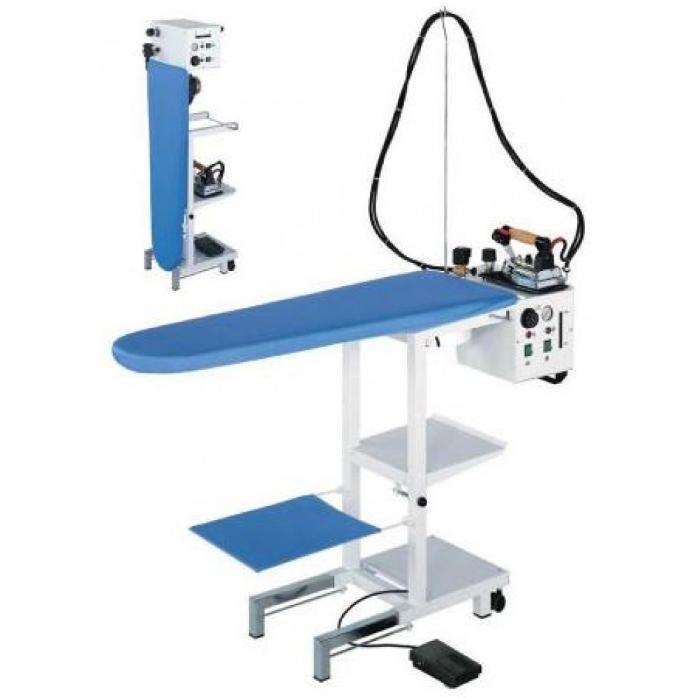 Это оборудование ВТО имеет встроенный парогенератор с электропаровым утюгом, нагреватель рабочей поверхности и вентилятор для отсоса воздуха.