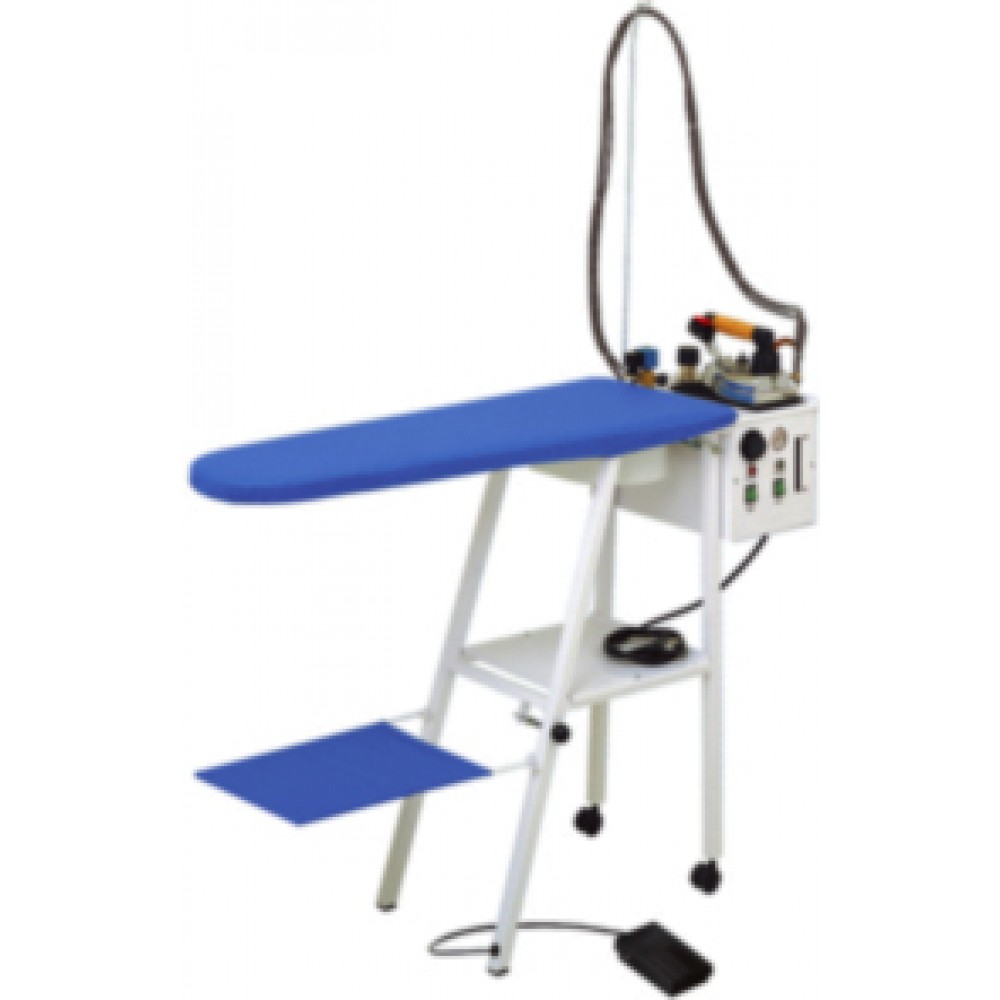 Это оборудование ВТО имеет встроенный парогенератор с электропаровым утюгом, нагреватель рабочей поверхности и вентилятор для отсоса воздуха.