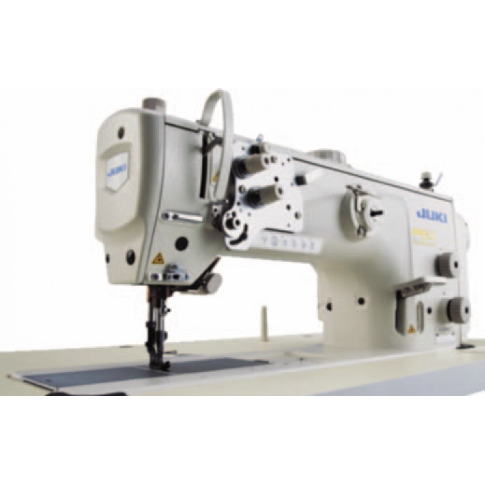 Двухигольная швейная машина Juki LU 2860 A с мультифункцией натяжения нити оснащена увеличенным челноком с вертикальной осью вращения и увеличенным рукавом (подрукавное пространство) 346126 мм. Вертикальный ход верхнего транспортера регулируется прижимной и транспортирующей лапками.