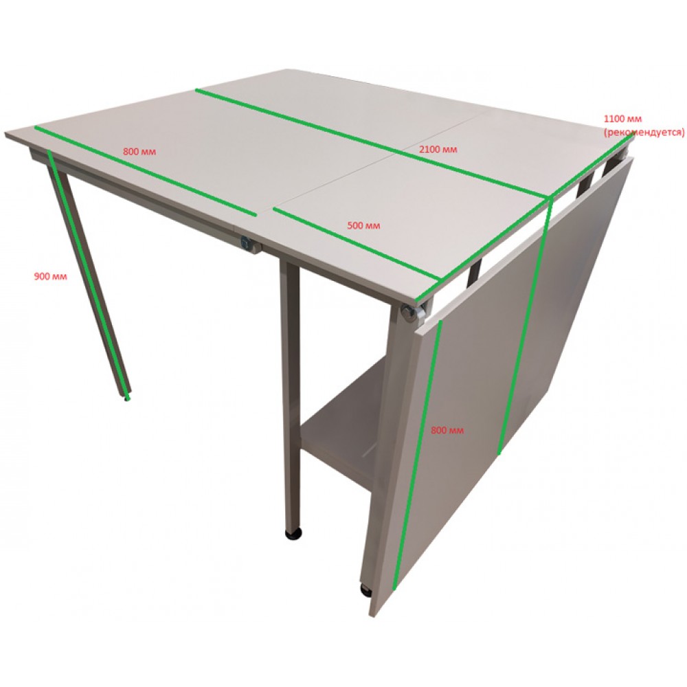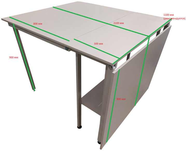 2100 мм - длина раскройного раскладного стола в разложенном состоянии.