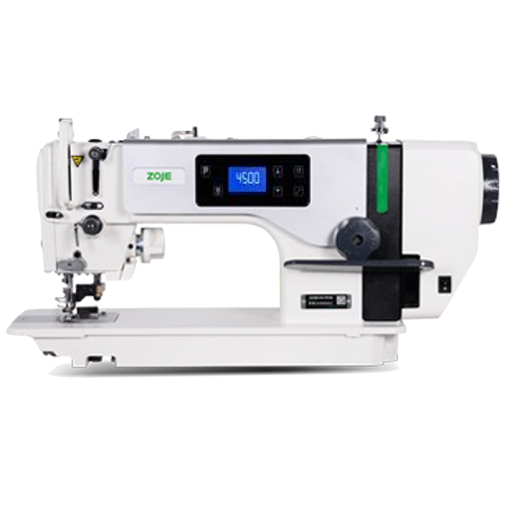 ZOJE A5300-D4/02 Одноигольная машина челночного стежка с нижним двигателем ткани, с прямым позиционирующим энергосберегающим приводом с электронной регулировкой скорости, со встроенным в голову блоком управления с кнопочным пультом. С краевым ножом, с автоматическими функциями: обрезкой ниток, подъемом лапки, закрепкой.