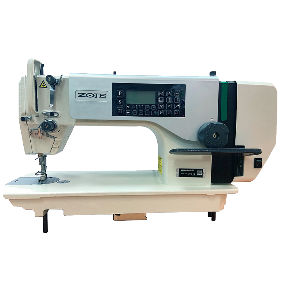 ZOJE A8000-D4-G/02 - Одноигольная, прямострочная швейная машина челночного стежка с нижним двигателем ткани, со встроенным в корпус энергосберегающим двигателем и кнопочным пультом управления: «все в одной», с автоматическими функциями: закрепки, обрезки, подъема лапки, механизмом фиксирования верхней нити, регулировкой позиции иглы и возможностью пошагового шитья предназначена для пошива легких и средних тканей.